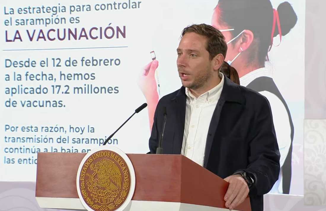 Los contagios de sarampión han mostrado una tendencia a la baja gracias a la vacunación en todo el país. En las últimas cuatro semanas, la velocidad de contagio del virus se ha reducido de manera significativa en las 32 entidades, pasando de 220 casos diarios registrados en febrero a cerca de 80 contagios por día en el corte más reciente. El brote tuvo sus primeros focos en el estado de Chihuahua y alcanzó su pico de contagio en el norte del país.